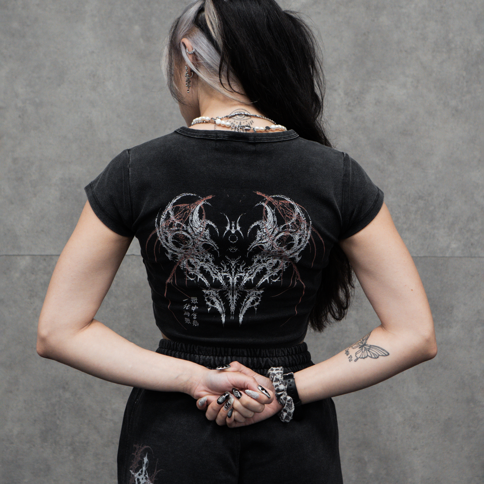 Each piece is handcrafted, ensuring its uniqueness. Minor variations in print, wash, and tone reflect the garment’s artisanal nature and are intentional to the Demiurge aesthetic.